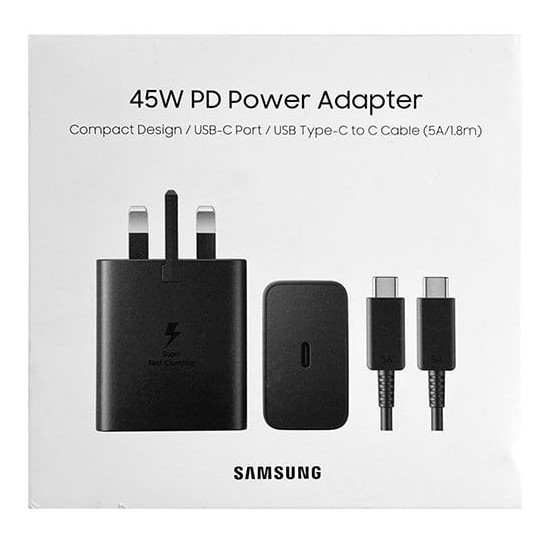 شارژر شرکتی سامسونگ 45 وات درای 1 عدد کلگی و 1 عدد کابل شارژ است که تولید شده توسط شرکت SAMSUNG است و به اصطلاح سرجعبه ( سرکارتن ) و یا شرکتی نامیده می شود.